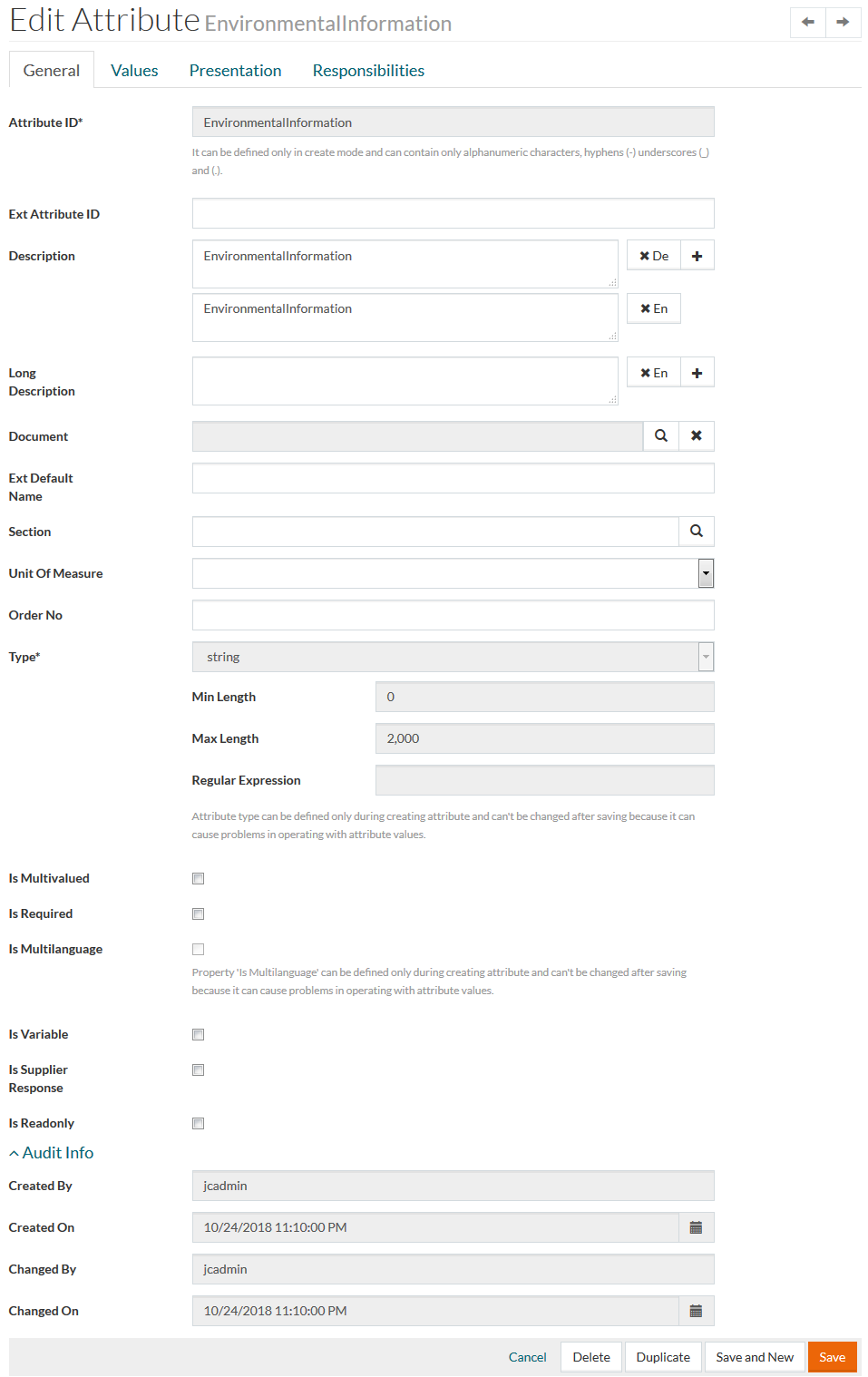 After saving the newly created classification the other tabs: Attributes, Compatibility Attributes and Responsibilities become available.