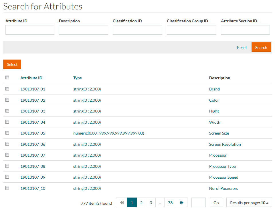 This opens the attributes search browser.