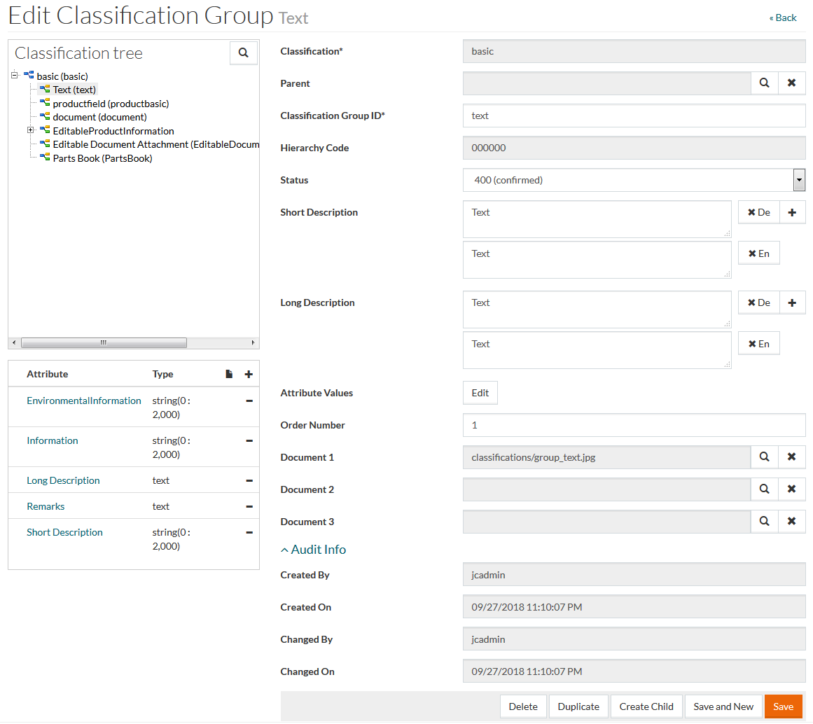 When an attribute is assigned to a classification group it will implicitly be assigned to all subgroups of the classification group recursively. The same logic is applied for deletion of attribute assignments in a classification group. In the attributes list of the classification group, a special icon will be displayed if the attribute is also assigned to the parent group.