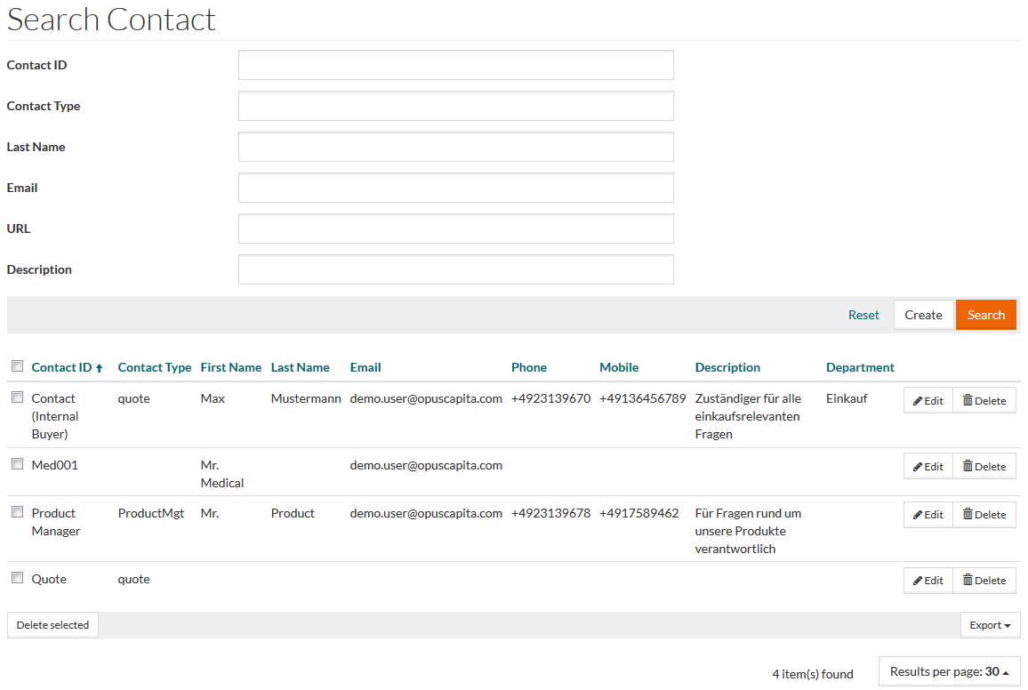 Contacts are created to store the information about the contact persons of suppliers and their areas of responsibility, to be able to contact them. Contacts can be assigned to suppliers on the Contacts tab of Supplier editor.