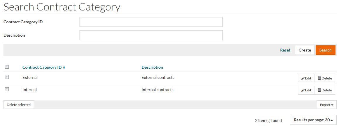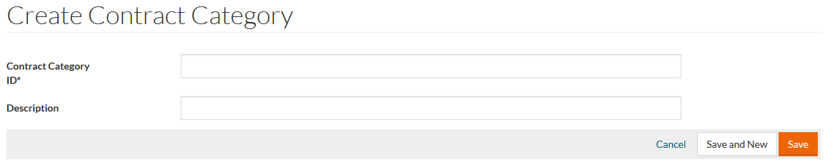 Enter Contract Category ID which is mandatory and the Description for the Category. Click Save to save the newly created Contract Category or Save and New to save and create a new one.