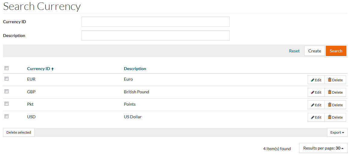 Click the Create button to open the Currency Editor to create/add a new Currency.