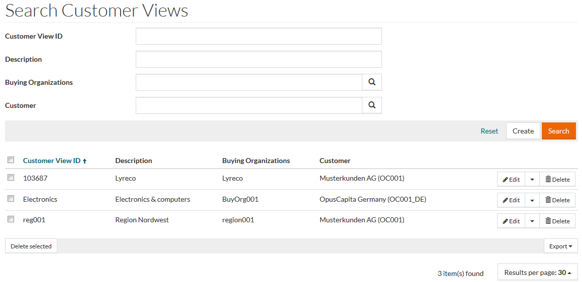 - Search the customer views by their ID or description, by customer or buying organizations they are assigned to.
