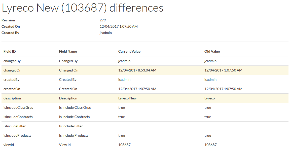 Click the Changes to see the revision details: