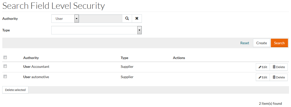 To create, search, edit, delete Field Level Security entries, click the Authorization menu - > Field Level Security menu item.