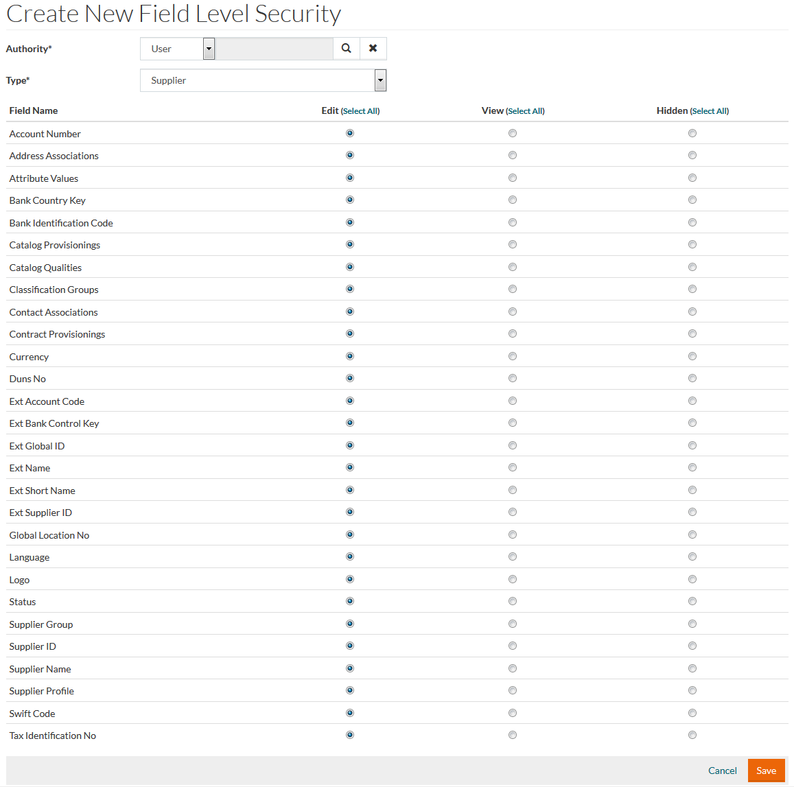 To create a new Field Level Security, click the Create button to open the Field Level Security Editor.