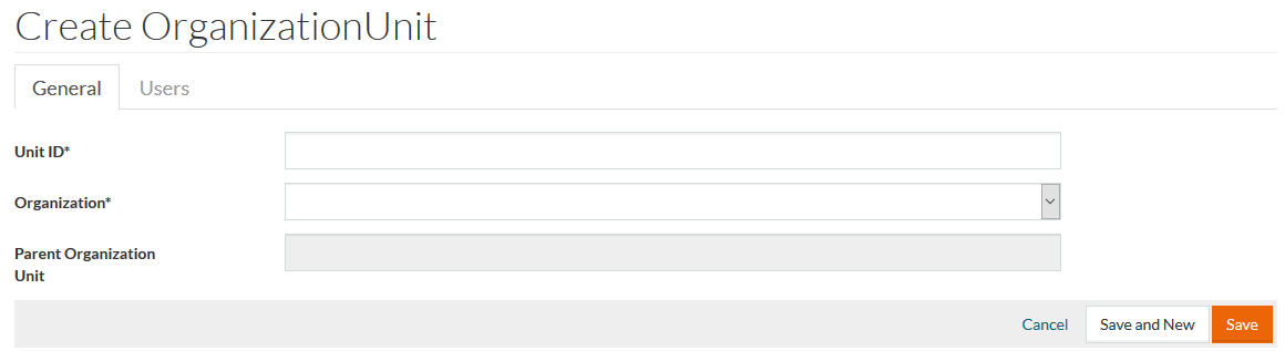 Enter the Unit ID, select the Organization the unit belongs to and select the Parent Organization Unit if the unit is subordinate to some other unit.