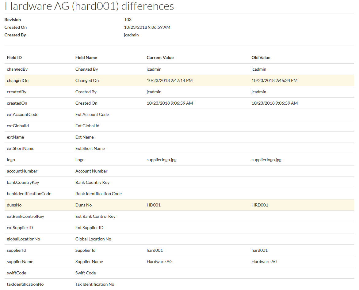 To get the list of supplier revisions select the Revisions option from the drop-down menu on the Search Result page or click the Revisions button on the Edit Supplier page.