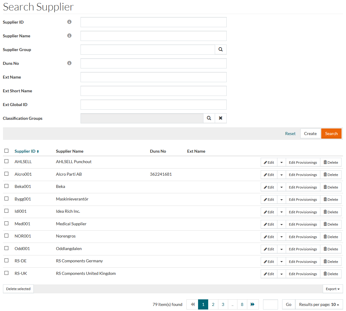 Click Edit Provisionings to go to the Supplier Provisioning page and manage Customer-Supplier relations.