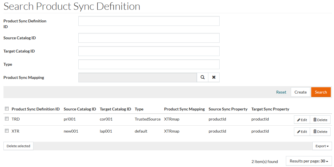 Currently only the Trusted Source Type sync mode is available. In this mode, the Source Catalog for the Target Catalog processing is determined dynamically. After determination, products will be synchronized based on the script configured in Product Sync Mapping (so before creating Product Sync Definition, it is required to create Product Sync Mapping).