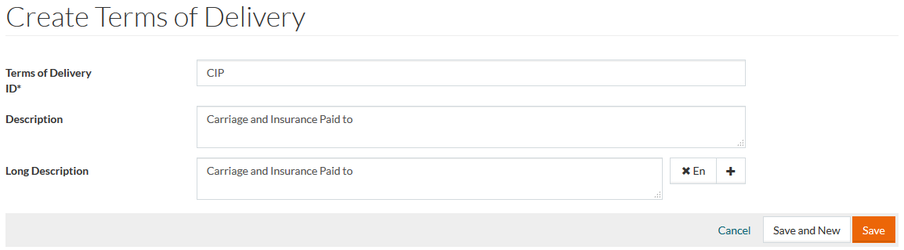 Click Save to save the terms. Click Save and New to save the changes and proceed to creating a new one. Click Cancel to cancel.