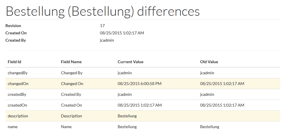 Click the Changes link to see the Revision details: