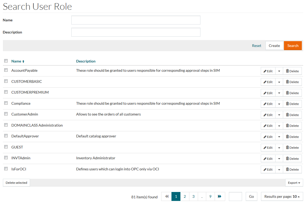 The User Roles menu makes it possible to create a new User Role, edit, delete, and search User Roles. See the Basic Actions page for more info on standard actions (search, sort, edit, delete etc.).